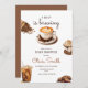 Celebre la próxima llegada de una pequeña con esta adorable invitación a la ducha de bebé con temática de café, que incluye cafés calientes, café helado, cremas batidas y granos de café. La elegante frase "A Baby is Brewing" hace que esta invitación sea perfecta para reuniones acogedoras en casa o para duchas infantiles al estilo moderno de un café.
