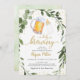 Esta invitación incluye una vegetación acuática con una cerveza y una botella de bebé y acentos de Relieve metalizado dorado.