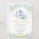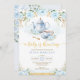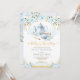 La ducha de bebé con temática de fiesta de té invita al azul y al oro. Haga clic en el botón "personalizar adicional" si desea reorganizar y formatear el estilo y la ubicación del texto. Viene con un patrón de flor que coincide con el reverso.