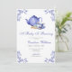 Este Baby Shower Invitation de "Baby is Brewing" cuenta con una tetera y una tetera de estilo chinoiserie morado, que crean un ambiente encantador y elegante para el fiesta de té. Los suaves tonos azules y el delicado diseño hacen que sea la elección perfecta para una celebración caprichosa y atractiva.