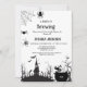 ¡Un bebé se está preparando! ¡Puedes celebrar a los futuros padres con esta invitación a la ducha de bebé con temática de Halloween! Un árbol aterrador está en la esquina inferior izquierda de esta obra de arte en blanco y negro, mientras que un caldero burbujeante está en la esquina inferior derecha. "Personalice esta plantilla" editando el texto de los campos de plantilla. Desplácese hasta "Haga clic en el personalizar más adelante" para obtener herramientas de edición más avanzadas. Una vez que estés en la herramienta de diseño de Zazzle, puedes cambiar los tipos de letra, el posicionamiento, el color, el tamaño y más!