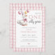 Esta encantadora invitación a la fiesta de cumpleaños incluye un lindo ganso con globos y un fondo rosa de gingham. Diseñado por Thisisnotme©