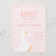 Invitación Un Chica rosado y tonto de oca, primer cumpleaños