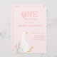 Invitación Un Chica rosado y tonto de oca, primer cumpleaños