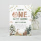 Un chico feliz de cumpleaños de camper, invitación feliz de camper, acampada con invitación a primer cumpleaños, Fiesta de primer cumpleaños de camping, Woodland.