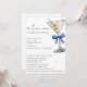 Una Tini está en el camino Simple Mínimo Invitación Azul Martini Baby Shower con código QR - Una simple, minimalista, acuarela invitación a una ducha bebé para un niño. Con caligrafía de guión y letra de bloque elegante. Un ilustracion acuático de un martini sucio con dos aceitunas y un arco azul coqueta adorna la esquina superior derecha. Edite esta plantilla de invitación a ducha de bebé con sus propios detalles de evento. Facilite a sus invitados el acceso a su registro de bebés agregando la URL de su sitio web del registro de bebés a la plantilla de código QR en la parte posterior de la invitación. Todo el texto es editable. También disponible como descarga digital instantánea, una forma eco-amigable de enviar invitaciones a través de texto, correo electrónico o medios sociales.