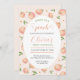 Esta adorable invitación incluye melocotones acuáticos, flores y vegetación, perfectos para celebrar el primer cumpleaños de tu niñita.
