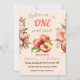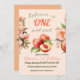 Fresco a jugoso UN dulce Peach Summer Floral Primer cumpleaños Invitación Chica presentó melocotones, flores y hojas verdes