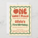 Una Peach Dulce- La Peach Retro Wavy 1ª Invitación De Cumpleaños Una Peach Dulce- Retro Peach 1ª Invitación De Cumpleaños... Plantilla editable Invitación de cumpleaños de Peach Invitación de primer cumpleaños de un dulce. #un melocotón dulce #un cumpleaños de melocotón dulce #una invitación de melocotón dulce #una invitación de cumpleaños de melocotón dulce