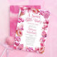 Sabemos que no puedes esperar a ver a tu "dulce bebé" y este diseño de Baby Shower con temática de caramelos te celebra a ti y a tu pequeño con toda su gloria rosa! Una deliciosa panadería y un marco rosa dulce rodean los detalles de la ducha a una manera tan deliciosa. La parte trasera está decorada con un remolino de caramelos de algodón para complementar este diseño más dulce que dulce.