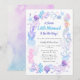 Invitación de cumpleaños de niña de sirena pequeña y dulce con acuarela pastel. Diseño femenino que puedes personalizar con tu nombre y texto para una fiesta de bebé niña.
