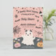 ¡Celebra tu pequeño libro con esta adorable invitación de Baby Shower A Spooky Sweet Surprise! Con un bonito fantasma blanco sobre un suave fondo rosado, este encantador diseño temático de Halloween es perfecto para una ducha de bebé en octubre. Ya sea que esté planeando una celebración de otoño espeluznante o una fiesta de Halloween pastel, esta plantilla editable facilita el personalizar y el envío a sus invitados. ¡Perfecto para imprimir o compartir digital!
