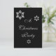 Invite a su invitado a su fiesta Navidad con esta invitación decorativa en negro elegante, con un trío de copos de nieve grises de invierno en la parte delantera y una versión individual en miniatura en el centro trasero. Personalizar con la información adecuada. También puede cambiar el título para que se adapte a cualquier otro evento, como una cena de Navidades.