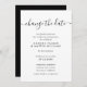 Anuncie el aplazamiento de su boda con este minimalista blanco y negro cambiar la invitación a la cita con caligrafía moderna.