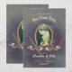 Invitación Un majestuoso pavo real en oro y verde.