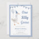 ¡Tu bebé se está volviendo ÚNICO, y este tonto ganso está aquí con el fiesta! Con acentos azules suaves, una proa de dapper y un globo flotante, esta invitación de primer cumpleaños es irresistiblemente linda. Ideal para los padres que planean una celebración divertida y desenfadada.