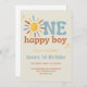 Ilumina el día especial de tu pequeño con nuestra invitación de cumpleaños número 1 con tema de sol "Un Niño Feliz"! Esta adorable y vibrante invitación es perfecta para celebrar el primer hito de tu bebé con estilo. Diseñada con tonos amarillos alegres, soles juguetones y detalles encantadores, seguro que marcará el tono para una celebración alegre que tus amigos y familiares apreciarán.