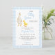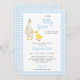 Bienvenidos invitados a su celebración con esta alegre invitación a bañarse en una ducha de bebé de gingham azul con un capricho ilustracion de oca. El encantador diseño de estilo rústico aporta un toque alegre y acogedor, perfecto para una ducha de primavera o verano. Ya sea que esté organizando una reunión en el patio trasero o un fiesta interior, esta invitación le da un encanto atemporal y divertido a su evento especial.