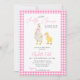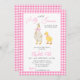 Bienvenidos invitados a su celebración con esta divertida invitación a bañarse en una ducha de bebé de gingham rosa con un capricho ilustracion de oca. El encantador diseño de estilo rústico aporta un toque alegre y acogedor, perfecto para una ducha de primavera o verano. Ya sea que esté organizando una reunión en el patio trasero o un fiesta interior, esta invitación le da un encanto atemporal y divertido a su evento especial.