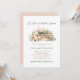Invite a los invitados a celebrar a la futura mamá con esta encantadora invitación de baby shower con tema de libro "Un nuevo capítulo comienza". Una hermosa ilustración de acuarela de libros de tapa dura apilados adornados con flores pastel rosa y rubor, vegetación y un osito de peluche dulce establece un tono de cuento de hadas. El texto rico en verde y bronce dorado es totalmente personalizable con los detalles de la ducha y la información del registro. La parte trasera cuenta con un suave acento rosa rubor.