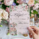 Esta invitación es una mezcla de fantasía y elegancia, diseñada para capturar la magia de un libro de cuentos que comienza. Las suaves flores rosas de color agua y la vegetación exuberante crean un ambiente delicado y romántico, mientras que un delgado arco rosa aporta un toque de dulzura. El diseño, inspirado en la intemporal belleza de los cuentos clásicos, constituye el escenario perfecto para una celebración caprichosa y sentida. Con una elegante caligrafía y un encantador guiño al libro de cuentos, esta invitación invita a los huéspedes a ser parte de un nuevo y emocionante capítulo en el viaje de los padres a ser. Ya sea por un acogedor té de la tarde o por una elegante reunión de inspiración literaria, este diseño simboliza maravillosamente el amor, el asombro y el comienzo de una historia muy apreciada por escribir. Elementos coincidentes disponibles.
