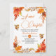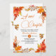 Un elegante diseño de la ducha de la novia con floral de caída rojiza, hojas de arce, bellotas, caligrafía elegante y tema de "un nuevo capítulo".
