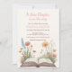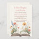 Invitación Un nuevo capítulo está en camino, libros, flores s