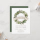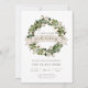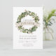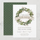Nuestra invitación moderna y rústica para fiesta de inauguración presenta "Un Nuevo Hogar para las Fiestas" en fuentes de estilo escritura a mano con los detalles de su fiesta debajo de una corona de algodón y vegetación. Hojas de verde salvia y tallos de algodón blanco añaden encanto navideño rústico a esta invitación de fiesta.