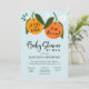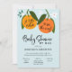 Ducha de bebé por invitación del correo celebrando la pequeña corbata en el camino! Envíe esta adorable invitación a la ducha de bebé de larga distancia con temática de naranja a sus seres queridos para celebrar a la mamá que sea. La invitación incluye dos naranjas clementinos de color agua pintados a mano. Personalice la frase con la ducha para celebrar a la mamá.