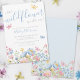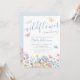 Invitación Baby Shower de Flores Silvestres de Mariposa Acuarela. "Hay una flor silvestre en camino" encabeza esta encantadora invitación pastel. Perfecto para celebrar una llegada nueva, este diseño floral y botánico cuenta con un jardín de flores silvestres acuáticas con tonos azules, amarillos, verdes y grises suaves, acentuado por delicados detalles de mariposas. Una suave proa azul aporta un toque dulce, uniendo el capricho. El texto está estilizado en una mezcla de fuentes modernas y tipografía de escritura azul elegante para un aspecto atemporal pero lúdico. Puede personalizar todos los colores de fuente para hacer el diseño más colorido o vibrante si lo desea. Las flores y las mariposas están decoradas con tonos vivos, y si deseas un ambiente más luminoso, esconde la capa "transparente blanca" para realzar los colores. La parte posterior de la invitación tiene un fondo azul suave, que se puede cambiar a cualquier color para que coincida con el tema. Celebra a la futura madre con esta invitación a la ducha de bebé inspirada en el jardín, perfecta para una celebración de "bebé en flor". Disponible como una invitación impresa o una invitación digital descargable que puede enviar por correo electrónico o imprimir localmente.