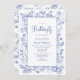 Invitación Un pequeño Baby Shower floral azul y blanco