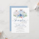 Una Pequeña Calabaza Cae En La Invitación De Baby Shower De Blue Boy Otoño. Elegante invitación a la ducha de bebé con temática de calabaza con hermosas calabazas blancas color agua, verdes y azules pastel, flores en azul polvoriento, vegetación y tipografía moderna. Moderna acuarela pintada a mano original personalizado invitación a la ducha de bebé. Puede personalizar la redacción, el estilo de letra, el color y el tamaño delante y detrás de la invitación.