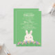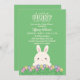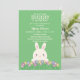 Un pequeño conejito está en camino de la invitación a la ducha de una niña.