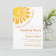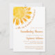 Esta tierna invitación a la ducha de bebé con luz solar incluye el texto "¡Un pequeño rayo de sol está casi aquí!" con un sol amarillo. Perfecto para una ducha para bebés sin diferencias de género. Personalizable fácil. Utilice la Herramienta de diseño para cambiar el tamaño, estilo o color del texto. Porque creamos nuestra obra de arte no encontrarás esta imagen exacta de otros diseñadores. Acuarela original © Michele Davies.
