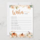 Celebra la llegada de un nuevo paquete de alegría con nuestro **A Little Pumpkin Baby Shower Wishes for Baby Card**. Esta encantadora tarjeta presenta un diseño de calabaza caprichoso, perfecto para añadir un toque de calidez de caída a la ducha de bebé. Los huéspedes pueden escribir sus sentidos deseos y sueños para el bebé, creando un recuerdo memorable para los futuros padres. Con sus elegantes colores otoñales y sus adorables gráficos de calabaza, realza cualquier celebración con temática de otoño. Captura el amor y la emoción de esta ocasión especial con una tarjeta que será apreciada en los próximos años.