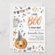 ¡Celebra la llegada de tu pequeño con nuestra invitación de Baby Shower "A Little Boo"! Con una calabaza linda con un gorra de brujas, un fantasma adorable y juguetones elementos de Halloween, esta invitación combina perfectamente la espeluznante diversión con la emoción festiva. El bonito diseño prepara el escenario para una inolvidable ducha de bebé, llena de alegría y espíritu de Halloween. BBS789