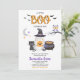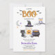Celebra la próxima llegada con nuestra invitación de Baby Shower "Gender Neutral A Little Boo"! Este encantador diseño presenta a un fantasma simpático sosteniendo una calabaza con un gorra de brujas, rodeado por un caldero mágico, un gato adorable, una búho violeta vibrante y murciélagos juguetones. La escena se complementa maravillosamente con una luna brillante y estrellas brillantes a un lado, creando un ambiente caprichoso y festivo. BBS453