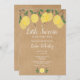 Con limones sobre un fondo rústico kraft esta invitación a la ducha para bebés puede ser personalizada con su información especial de evento y sus iniciales de monograma al revés. Diseñado por Thisisnotme©