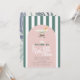 Inspirada en el glamour atemporal de los clásicos resorts de Hollywood y de Beverly Hills, esta elegante invitación al cumpleaños muestra un lujoso vaso de martini enmarcado por un arco rosa salmón suave y audaces rayas verdes que evocan palmeras, cócteles y la sofisticación al sol. En el reverso se encuentran las exuberantes hojas tropicales que le dan un toque de paraíso retro. Perfecto para una moda sin esfuerzo de celebración adulta.