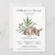 "Un poco querido no es el camino", adorable acuarela durmiendo bebé ciervo fawn baby ducha plantilla de invitación. Un lindo diseño neutral de género en animales de bosque. Invitación disponible en versión impresa, como descarga digital, o ambos!