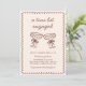 Una Invitación A La Ducha Bridal Un Poco Involucrada". ¡Celebremos a la futura novia con esta invitación a la moda y a la ducha de novia! El diseño es tan lúgubre como sofisticado, con un original espresso de vidrio martini a mano adornado con una proa delicada. Los tonos marrones cálidos y el marco ondulado le dan un toque de diseño, perfecto para una reunión divertida y elegante. Ya sea que esté organizando una velada de cócteles o un brunch íntimo, esta invitación marca la pauta para un evento inolvidable. Los campos de texto de personalizable facilitan la personalización de los detalles del fiesta. Ideal para novias modernas que aman un toque de fantasía, este diseño capta la alegría y la emoción del momento. Una celebración obligada para damas de honor, amigos y planificación familiar llena de risas y amor. Póngalo en pareja con la decoración para un aspecto coordinado. ¡Pida hoy y levante un vaso a un "tini" un poco comprometido!