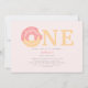Es tan dulce ser uno. Celebra el primer cumpleaños de tu bebé con un tema de donut dulce. Personalice esta invitación de cumpleaños con el nombre del bebé y los detalles del fiesta.