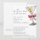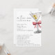 Una Tini está en camino. Simple invitación minimalista de baby shower rosa con código QR - Una invitación simple y minimalista de baby shower de estilo acuarela para una niña. Con caligrafía y fuente de bloque elegante. Una ilustración de acuarela de un martini sucio con dos aceitunas y un lazo coqueto rosa adorna la esquina superior derecha. Edite esta plantilla de invitación de baby shower con los detalles de su evento. Haga que sea fácil para sus invitados acceder a su lista de regalos de bebé agregando la URL de su sitio web de lista de regalos de bebé al código QR en la parte trasera de la invitación. Todo el texto es editable. También disponible como descarga digital instantánea, una forma ecológica de enviar invitaciones por mensaje de texto, correo electrónico o redes sociales.
