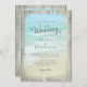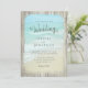 Esta moderna y rústica invitación a la boda en la playa incluye todos los detalles en la parte posterior, con un código QR para facilitar a sus huéspedes el acceso a RSVP en línea. El diseño de la costa presenta una escena de playa al fondo, enmarcada con mariscos rústicos acristalados.