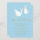 Con una linda cigüeña con un parto muy especial, sobre un suave fondo azul, esta invitación a la ducha de bebé, a la ducha de rociado o a la ducha de parejas es perfecta para todos los niños que van en camino. Añade tus detalles de celebración en texto dorado para crear la invitación perfecta. Diseñado por Thisisnotme©