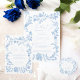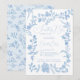 Algo azul antes de hacer una ducha con colcha de agua floral Invitación, con flores victorianas de color azul francés pintadas a mano en un estilo chinoiserie azul claro con una elegante caligrafía de escritura.