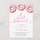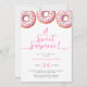 Invite a sus huéspedes con esta adorable ducha de bebé con temática de donut para una dulce sorpresa. Con donuts de espuma rosada y rociadores coloridos, este diseño es perfecto para una celebración de una niña. La frase "Una dulce sorpresa" añade un toque divertido. El blanco inmaculado y la disposición moderna hacen que sea fácil de personalizar. Disponible como tarjeta impresa o descarga digital.