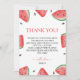 Exprese su gratitud con nuestra tarjeta de agradecimiento "One In A Melon" Birthday Watermelon. Con encantadores diseños temáticos sobre la sandía, esta tarjeta es perfecta para mostrar su agradecimiento a sus invitados después de la celebración. Con un diseño lúdico y alegre, añade un toque personal a tu mensaje de agradecimiento, haciendo que cada destinatario se sienta especial. Haz que la gratitud post-fiesta sea extra dulce con esta deliciosa carta de agradecimiento con temática de sandía.