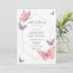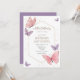 ¡Una mariposa está en camino! Adorable invitación a la ducha con temas de mariposa rosa y púrpura para celebrar a la mami. Personalice su información o haga clic en "Haga clic en el personalizar más adelante" para editar estilos de fuente, tamaño y colores.
