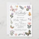 Plantilla de invitación Baby Shower de mariposa con modernos ilustraciones botánicos y mariposa, tipografía de guiones caprichosos y retrovisor a rayas. Los suaves colores pastel hacen de este lugar el lugar perfecto para una ducha de bebé de primavera o una ducha de bebé de verano.